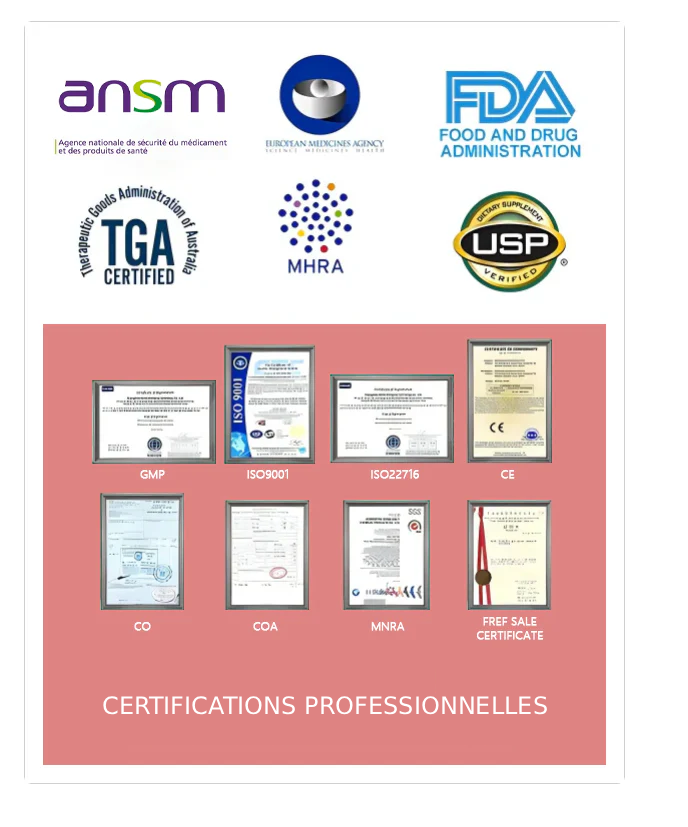 ✔️ certifications : FDA, CE, ISO, GMP, ANSM (France)