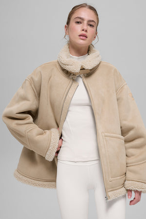 A cold-weather essential with a luxe edge. The Faux Shearling Grand Jacket is plush on the inside with a sleek exterior finish, designed to deliver warmth without the bulk. The oversized collar, zip-front closure, and buckle detail give it modern polish that transforms any look into a statement.